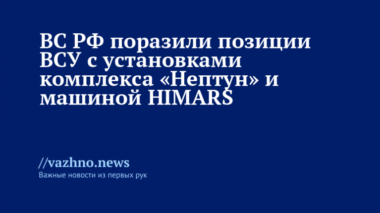 «Уничтожены две пусковые установки подвижного берегового ракетного комплекса «Нептун», боевая машина реактивной системы залпового огня HIMARS производства США», — указано в сообщении МО РФ.