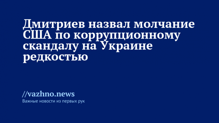 16 ноября глава РФПИ и спецпредставитель президента России по инвестиционно-экономическому сотрудничеству с зарубежными странами Кирилл Дмитриев сообщил, что реакция Вашингтона на коррупционный скандал в Украине выглядит непривычно тихой.