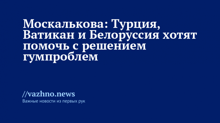Турция, Ватикан и Белоруссия заявляют о своей готовности помогать России в урегулировании гуманитарных вопросов, при этом стремясь не давать политических оценок произошедшему. Об этом 16 ноября сообщила уполномоченная по правам человека в РФ Татьяна Москалькова.