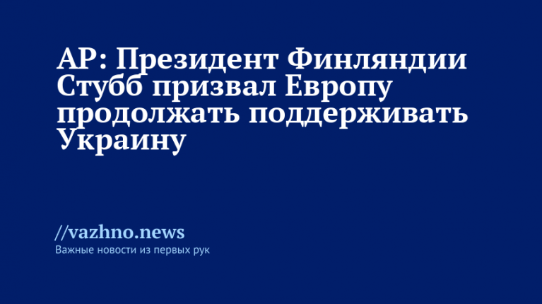 Президент Финляндии Александр Стубб заявил, что поддержку Украины следует продолжать, несмотря на коррупционные скандалы и трудности в мирных переговорах с Россией. Об этом сообщило агентство Associated Press (АР).