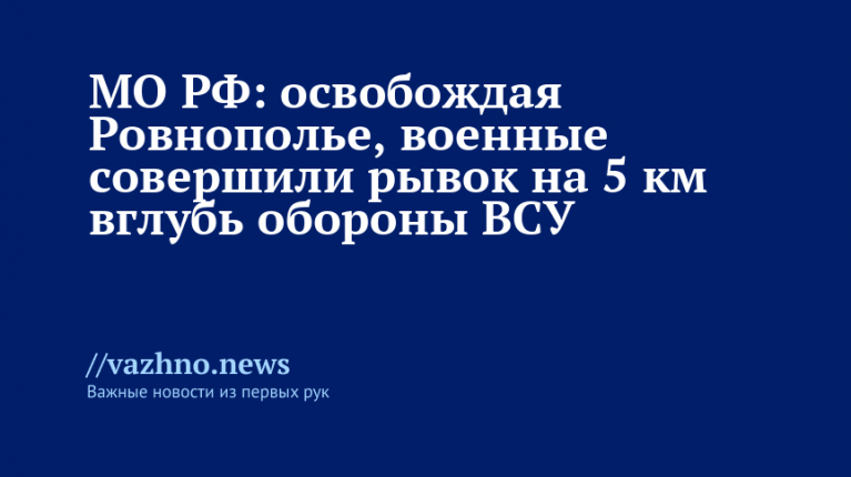 Минобороны: при освобождении Ровнополья войска продвинулись на 5 км
