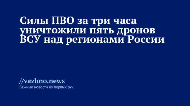 ПВО за три часа сбили пять дронов ВСУ над регионами РФ
