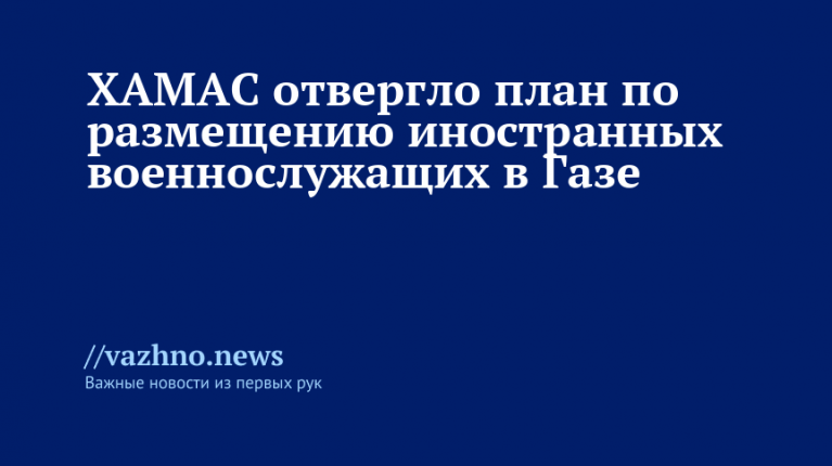 Радикальное палестинское движение ХАМАС отвергает предложение о размещении иностранных стабилизационных сил в секторе Газа. Об этом 16 ноября сообщает телеканал Al Jazeera, ссылаясь на опубликованное заявление группировки.