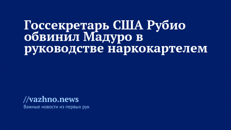 Госсекретарь США Марко Рубио обвинил президента Венесуэлы Николоса Мадуро в руководстве наркокартелем «Лос Солес» и сообщил, что Госдеп намерен признать эту группировку иностранной террористической организацией. Об этом он написал 16 ноября в социальной сети X.