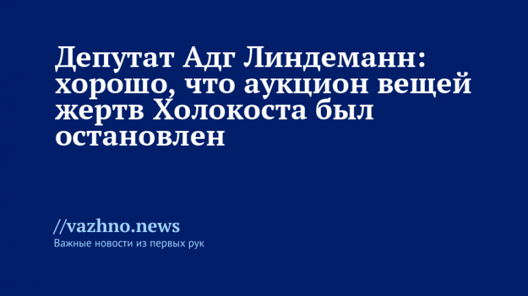 Депутат партии «Альтернатива для Германии» (АдГ) из Германии Гуннар Линдеманн выразил мнение, что торги по продаже вещей жертв Холокоста в ФРГ были жутким событием. Такое заявление политик сделал 17 ноября в интервью «Известиям».