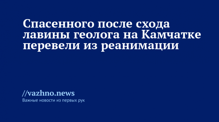Состояние геолога, который примерно сутки пробыл под снежной лавиной на Камчатке, пришло в стабильное русло, его перевели из реанимационного отделения. Об этом 17 ноября сообщили в Telegram-канале минздрава Камчатского края, отметив, что пострадавший находился под завалом и нуждался в экстренной помощи.
