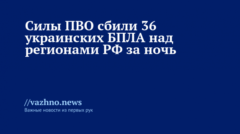 «В течение прошедшей ночи в период с 23:00 мск 16 ноября до 7:00 мск 17 ноября дежурными средствами ПВО перехвачены и уничтожены 36 украинских БПЛА самолетного типа», — говорится в заявлении.