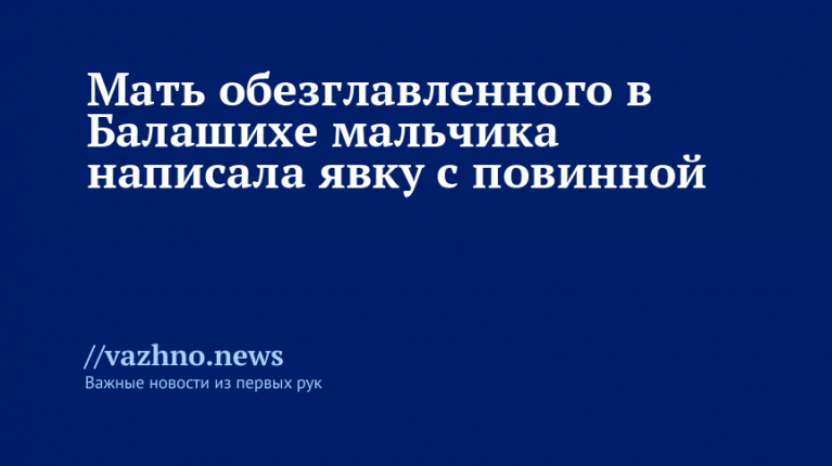 Женщину, которая является матерью ребёнка, тело которого нашли в Балашихе, задержали по подозрению в совершении убийства. По данным следствия, она написала явку с повинной и признала свою причастность к преступлению. Сведения об этом 17 ноября опубликовали в Главном Следственном управлении (ГСУ) Следственного комитета (СК) РФ по Московской области.