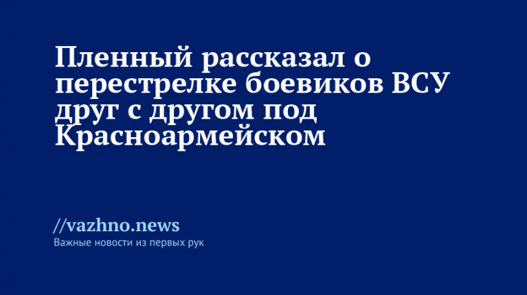 Военные Вооруженных сил Украины (ВСУ) вступили в перестрелку между собой при попытке разблокировать Красноармейск (украинское название — Покровск). Об этом 17 ноября заявил военнослужащий Главного управления разведки (ГУР) Украины Руслан Шахун, который сдался в плен 30-й отдельной мотострелковой бригаде группировки войск «Центр».