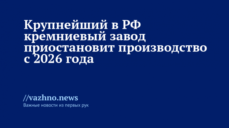 «Вследствие мирового перепроизводства кремния и роста импорта кремния по демпинговым ценам в Россию завод АО «Кремний» вынужденно приостанавливает производство с 1 января 2026 года. Завод «Кремний Урал» продолжит работать в неполную мощность», — передает сообщение «РИА Новости».
