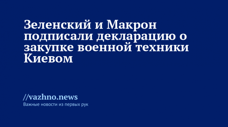 Президент Украины Владимир Зеленский и его французский коллега Эммануэль Макрон подписали декларацию, в которой изложены планы Киева по закупке французского вооружения. Сообщение об этом появилось 17 ноября в Telegram-канале украинского интернет-издания «Страна.ua».