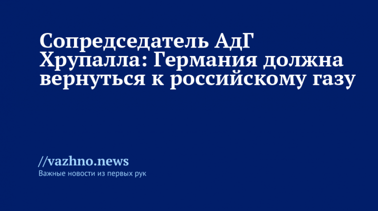 Сопредседатель партии «Альтернатива для Германии» (АдГ) Тино Хрупалла призвал Германию снова начать использовать российский газ и заняться ремонтом газопроводов «Северный поток». Своё мнение он выразил в эфире телеканала Servus TV, запись которого затем была размещена на YouTube-канале.