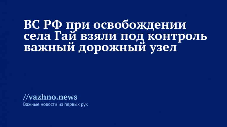 ВС РФ при штурме села Гай захватили ключевой дорожный узел