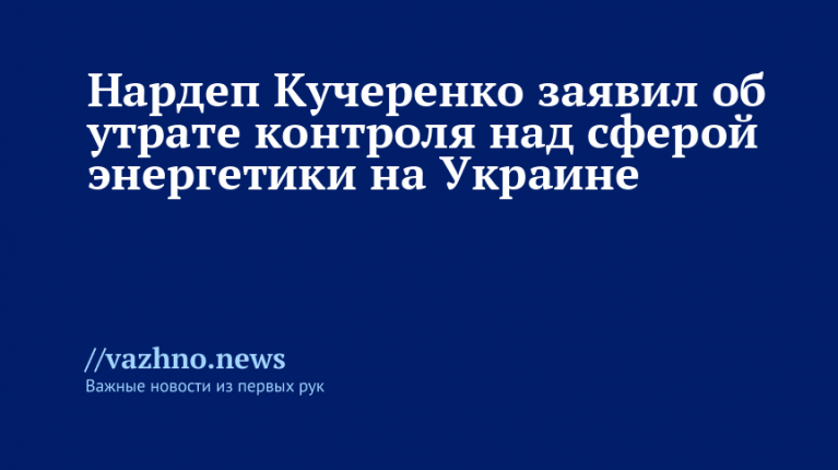 Правительство Украины потеряло контроль над ситуацией в энергетическом секторе и допустило масштабные хищения государственных средств. С таким заявлением 17 ноября выступил глава комитета Верховной рады по вопросам энергетики Алексей Кучеренко в эфире украинского телеканала «Новости.Live».