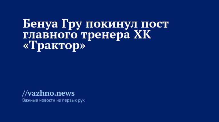 Бенуа Гру принял решение уйти с поста главного тренера челябинского хоккейного клуба (ХК) «Трактор», объяснив свой шаг моральным и физическим истощением. Сообщение об отставке было опубликовано пресс-службой команды в ее Telegram-канале 17 ноября.