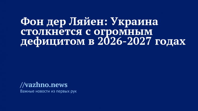 Фон дер Ляйен: Украина столкнётся с крупным дефицитом в 2026–2027