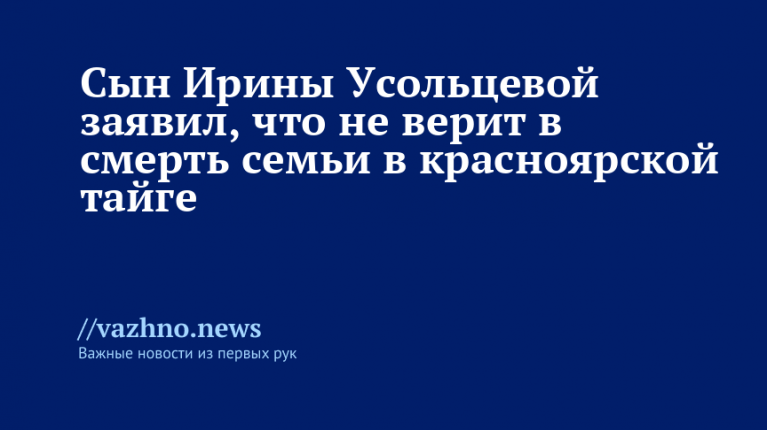 Даниил Баталов, сын пропавшей в тайге Ирины Усольцевой, сообщил, что его родители и пятилетняя сестра живы и самостоятельно покинули зону поисков. Об этом он сказал 17 ноября в беседе с красноярским порталом NGS24.Ru.