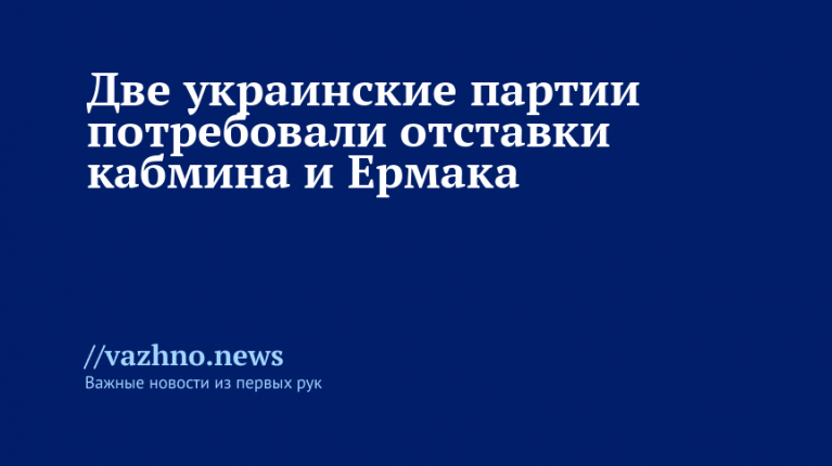 Украинские партии «Евросолидарность» и «Голос» официально предъявили президенту Украины Владимиру Зеленскому требования об отставке главы его офиса Андрея Ермака и об уходе правительства. Об этом 17 ноября проинформировало украинское издание «Страна.ua».