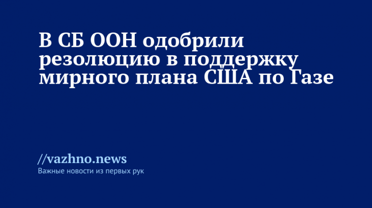 17 ноября стало известно, что Совет Безопасности (СБ) Организации Объединенных Наций (ООН) одобрил американский проект резолюции, поддерживающий план президента США Дональда Трампа по установлению мира в секторе Газа.