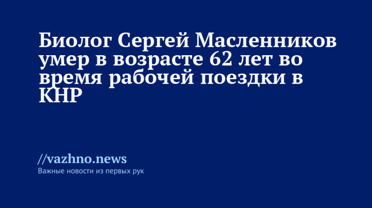 Биолог Сергей Масленников, 62, умер во время рабочей поездки в КНР