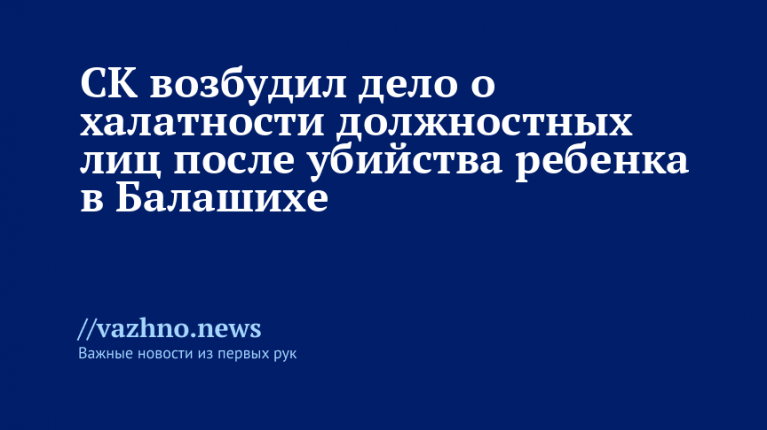 СК возбудил дело о халатности после убийства ребёнка в Балашихе