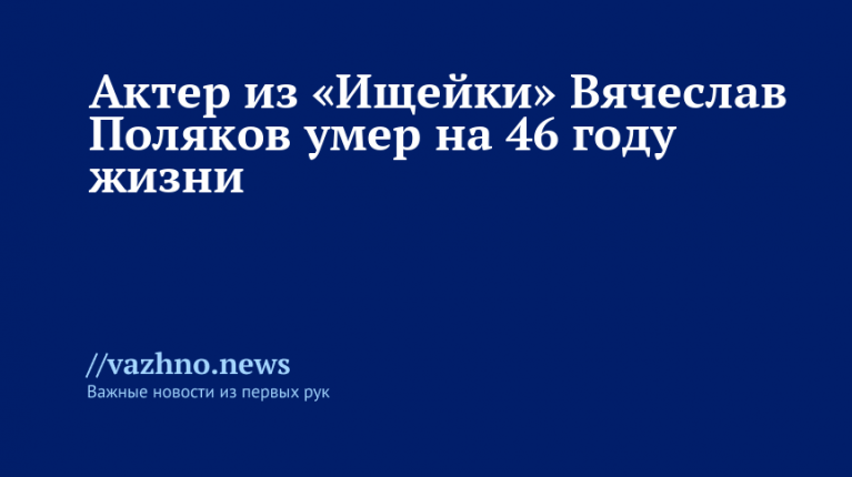Актер театра и кино, педагог Вячеслав Поляков скончался на 46-м году жизни. Об этом сообщение разместил портал «Кинотеатр.ру».