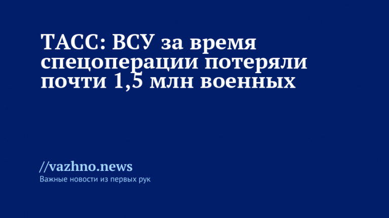 ТАСС: ВСУ потеряли почти 1,5 млн убитыми и ранеными с 2022