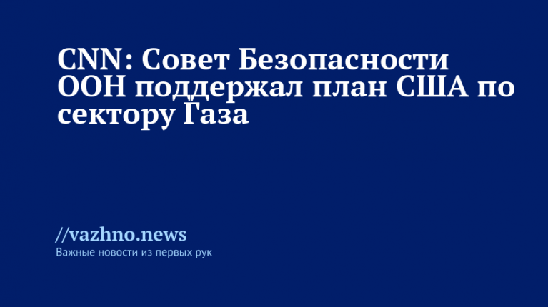 CNN: Совет Безопасности ООН поддержал план США по сектору ГазаСовет Безопасности ООН принял подготовленную США резолюцию, направленную на выход за рамки хрупкого перемирия в Газе, на установление мира и восстановление разрушенного анклава. Совет из 15 членов проголосовал за резолюцию 13 голосами против нуля, при этом воздержались Россия и Китай, которые не стали использовать свое право вето, чтобы заблокировать эту меру.