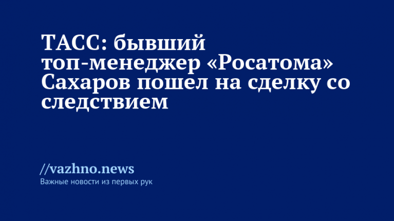 Экс-топ-менеджер «Росатома» Сахаров пошёл на сделку со следствием