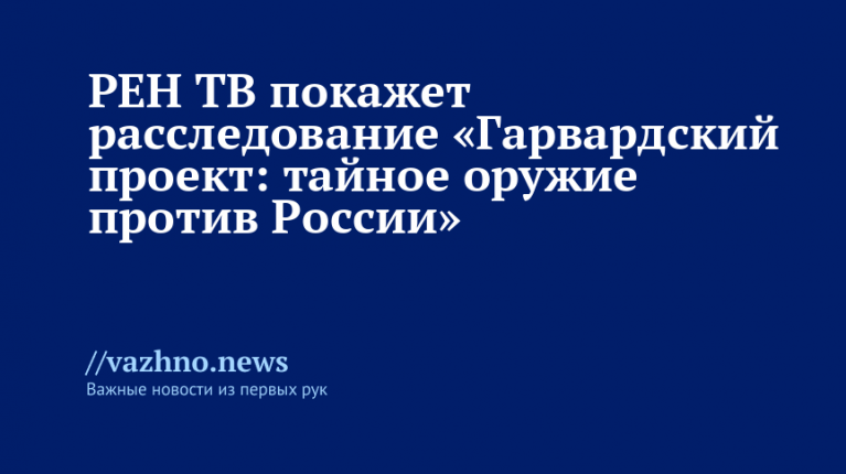 Документальное расследование «Гарвардский проект: тайное оружие против России» выйдет на телеканале РЕН ТВ в среду, 19 ноября, в 18:00.