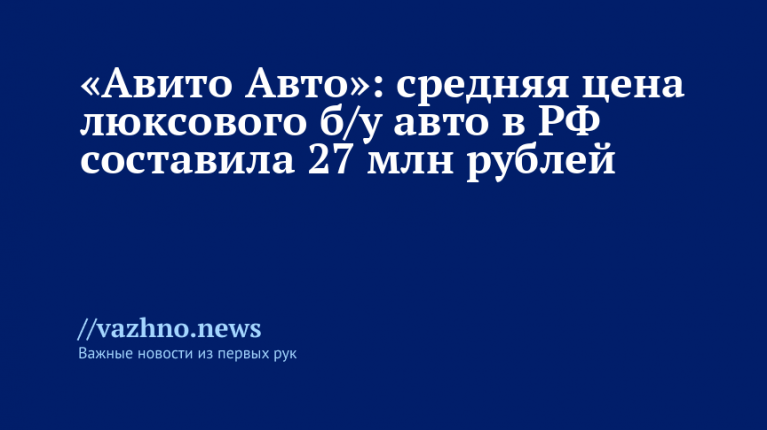 Авито Авто: средняя цена люксового б/у авто в РФ — 27 млн ₽