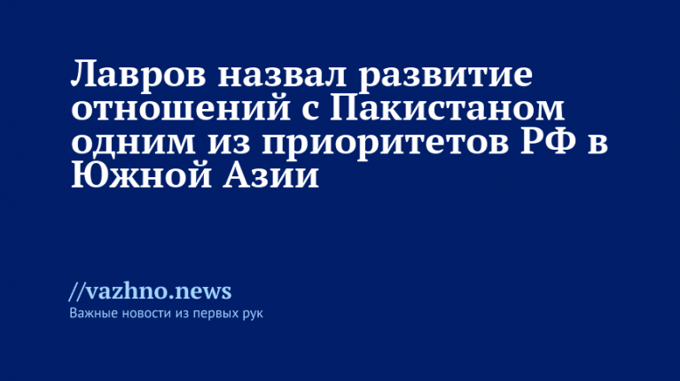 Лавров: укрепление партнёрства с Пакистаном — приоритет России в Южной Азии