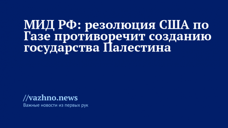 МИД РФ: резолюция США по Газе противоречит созданию Палестины
