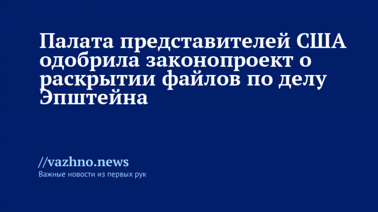 Во вторник, 18 ноября, Палата представителей США проголосовала за законопроект, направленный на раскрытие материалов по делу финансиста Джеффри Эпштейна, которого обвиняют в торговле несовершеннолетними и сексуальной эксплуатации.