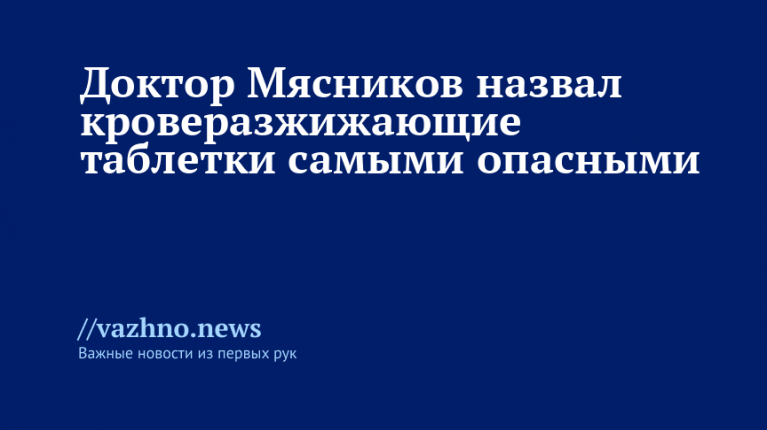 «Одни из самых опасных таблеток — кроверазжижающие. Они как скальпель: ими можно сделать операцию и спасти жизнь, а можно и отнять жизнь, перерезав горло», — отметил Мясников.