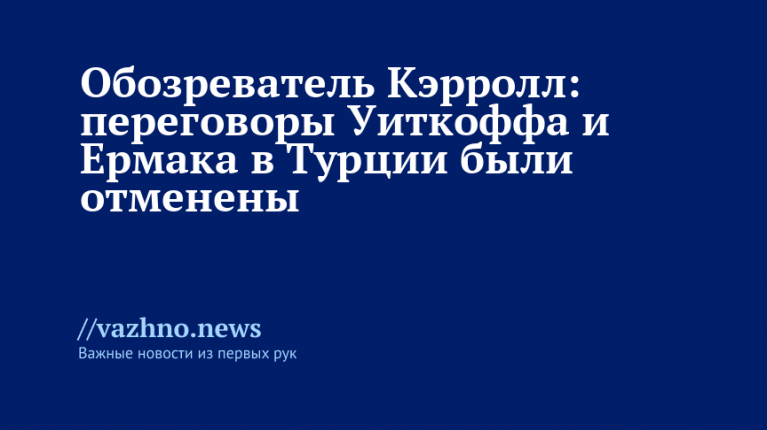 Переговоры спецпосланника президента США Стива Уиткоффа и главы офиса президента Украины Андрея Ермака, которые были намечены в Турции на 19 ноября, отменены. Об этом 18 ноября сообщил обозреватель The Economist Оливер Кэрролл, указав дату и место запланированной встречи и её последующую отмену.