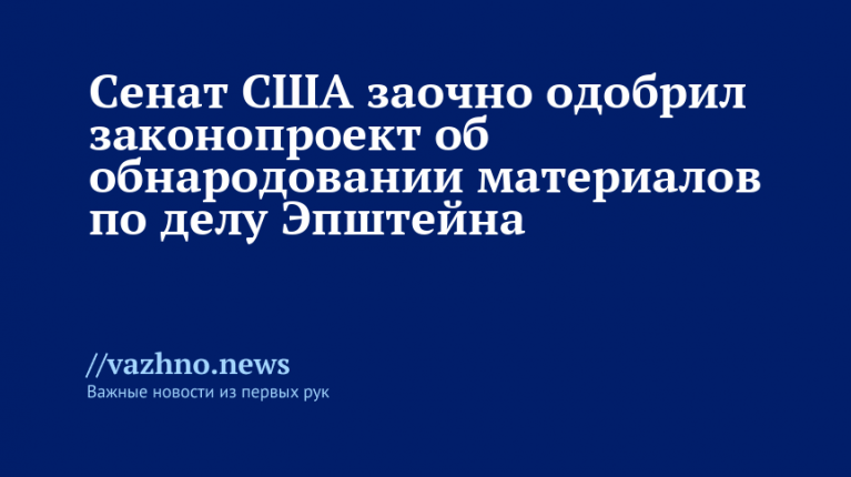 Американский сенат заочно одобрил постановление, предусматривающее раскрытие документов по делу в отношении обвиняемого в торговле несовершеннолетними и сексуальной эксплуатации финансиста Джеффри Эпштейна. Об этом сообщили вечером 18 ноября на заседании верхней палаты, где было принято решение обнародовать материалы по этому делу.