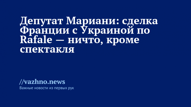 Сделка, которую согласовали президент Украины Владимир Зеленский и французский лидер Эммануэль Макрон о приобретении Киевом у Парижа 100 истребителей модели Rafale, по мнению депутата Европарламента Тьерри Мариани из партии «Национальное объединение» (RN), ничего не представляет собой и является своего рода «спектаклем». Об этом политик заявил 19 ноября.