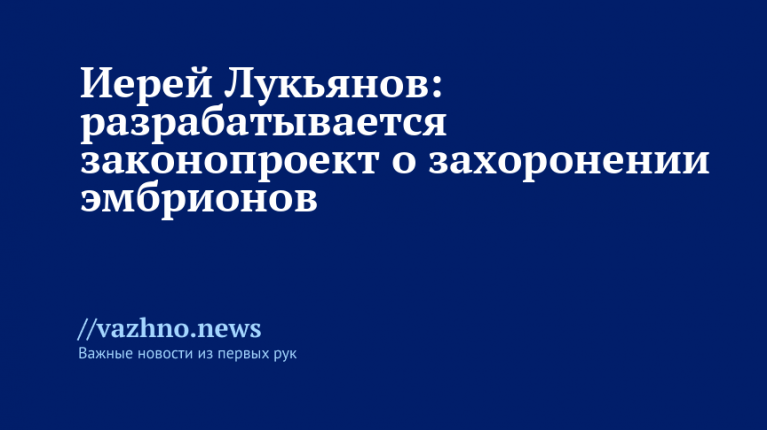 В Русской Православной Церкви выражают поддержку инициативе по разработке законопроекта, который будет регламентировать захоронение плодов человека, в том числе останков нерожденных младенцев, а также выступают за введение запрета на вывоз репродуктивных тканей. Об этом 18 ноября на заседании Всемирного русского народного собора (ВРНС) заявил председатель патриаршей комиссии РПЦ по вопросам семьи, защиты материнства и детства, иерей Федор Лукьянов.