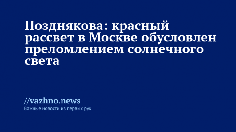 Позднякова: красный рассвет в Москве вызван преломлением света