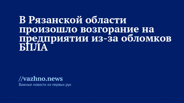 В Рязанской области на территории одного предприятия возгорелись части обломков беспилотного летательного аппарата (БПЛА) после их падения. Об этом 19 ноября сообщил губернатор региона Павел Малков.