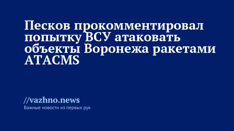 Российские Вооруженные Силы (ВС) отражают попытки украинских боевиков нанести удары по территории России. Об этом 19 ноября заявил официальный представитель Кремля Дмитрий Песков, комментируя попытку киевского режима поразить Воронеж ракетами ATACMS.