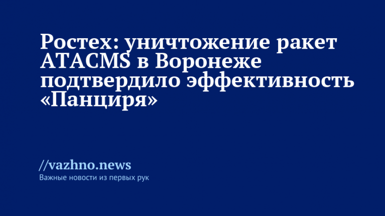 Ростех: уничтожение ATACMS в Воронеже доказало эффективность «Панциря»