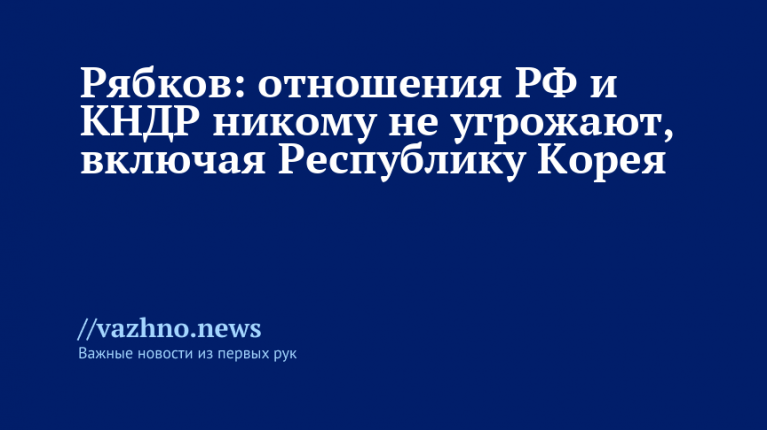 Рябков: отношения РФ и КНДР никому, включая РК, не угрожают