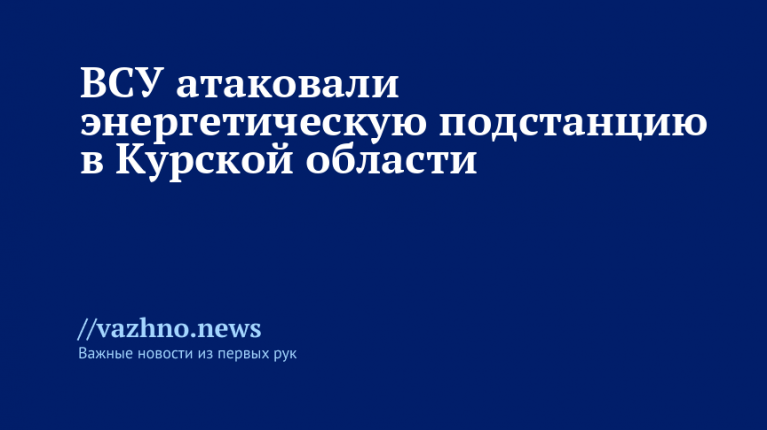 Вооруженные силы Украины (ВСУ) нанесли удар по энергетической подстанции в микрорайоне Боровское Курской области. Об этом 19 ноября сообщил губернатор региона Александр Хинштейн.