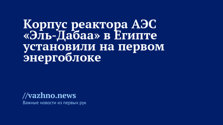 «С гордостью объявляю, что мы полностью готовы к установке корпуса реактора первого энергоблока АЭС «Эль-Дабаа». Мы начинаем установку корпуса реактора первого энергоблока», — сообщил он.
