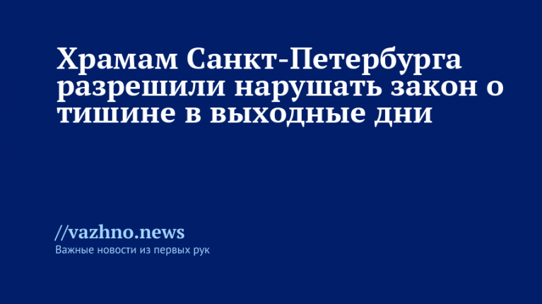 Законодательное собрание Санкт-Петербурга в первом чтении одобрило закон, который закрепляет право на проведение богослужений в выходные и праздничные дни. Теперь приходские храмы смогут звонить в колокола и не нести штрафную ответственность за нарушение режима тишины. Об этом 19 ноября сообщается в Telegram-канале законодательного органа.
