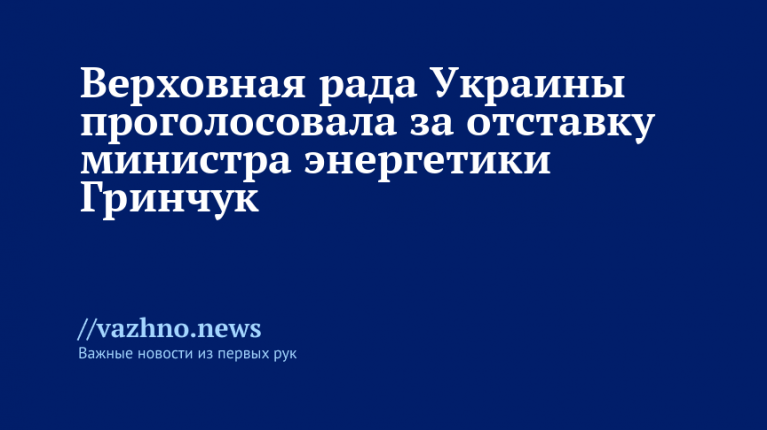 «Верховная Рада Украины приняла проект постановления об освобождении Гринчук С.В. от должности министра энергетики Украины», — говорится на сайте рады.