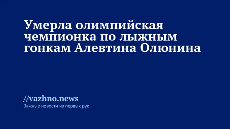 На 84-м году жизни скончалась олимпийская чемпионка по лыжным гонкам Алевтина Олюнина. Сообщение об этом 19 ноября появилось на портале государственных органов Костромской области. В известии указано, что причиной прощания с известной спортсменкой стала ее долгая и яркая спортивная карьера, а также вклад в развитие лыжного спорта в регионе.