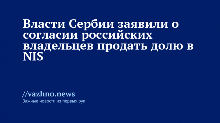 «Российские владельцы договорились продать свою долю в «Нефтяной индустрии Сербии», которая составляет 56,15%. Имя третьей стороны не раскрывается, потому что речь идет о деловых переговорах серьезных компаний», — приводит слова главы сербского Минэнерго газета Novosti.rs.